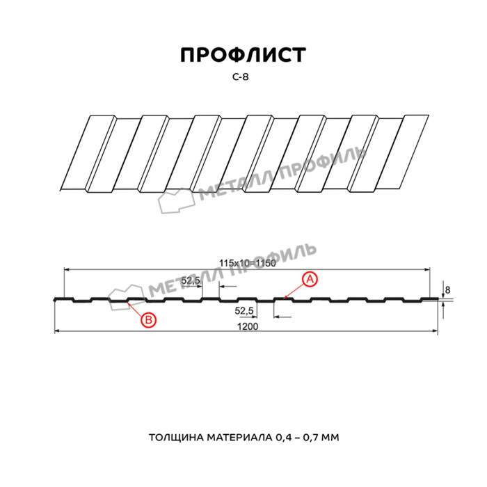 Профлист Металл Профиль С-8 0,7 Полиэстер RAL 5015 Синее небо | B
